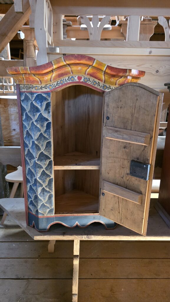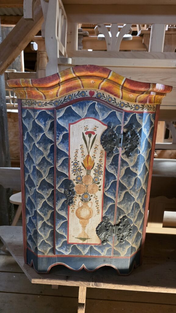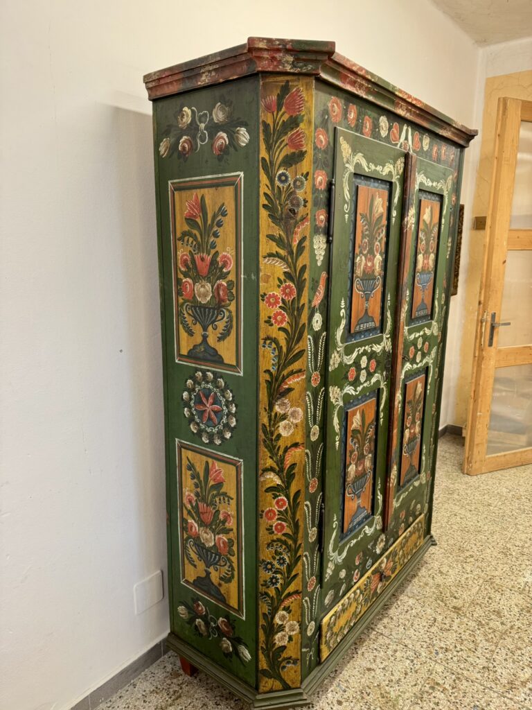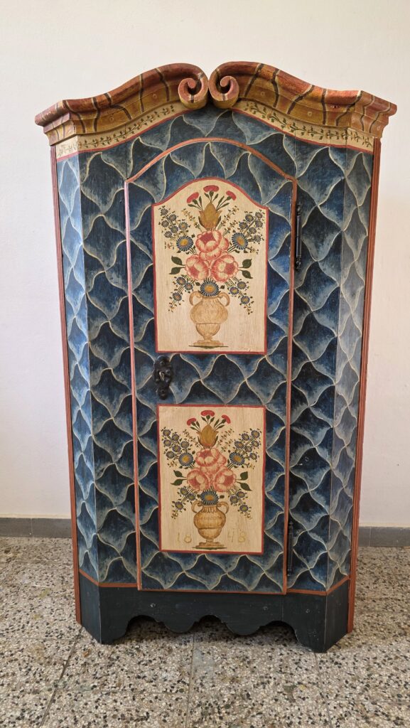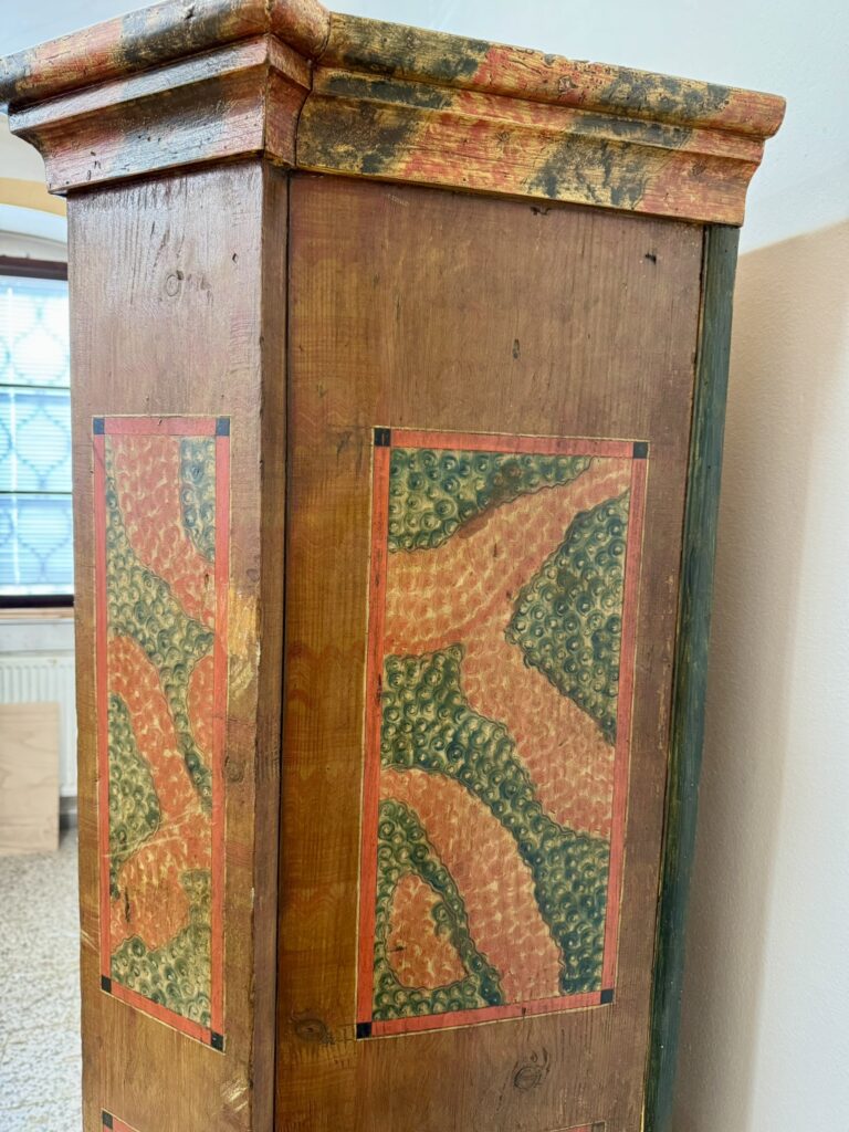 Malovaná skříň s originální malbou a truhlou, signovaná rokem 1862.