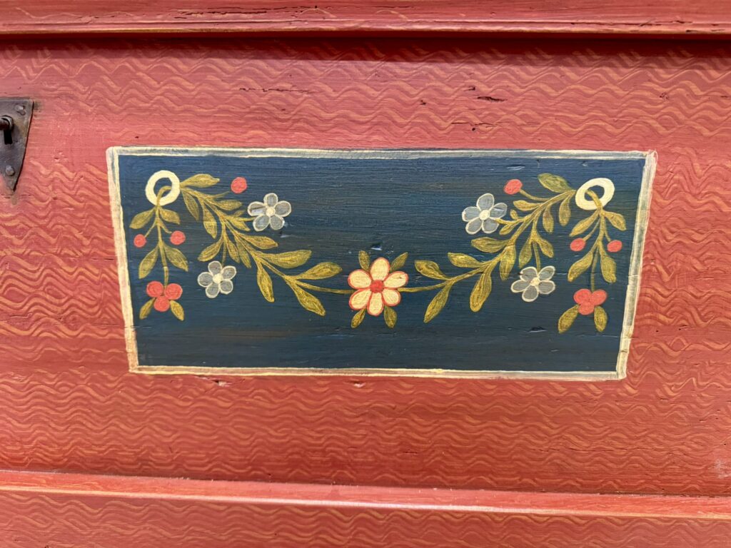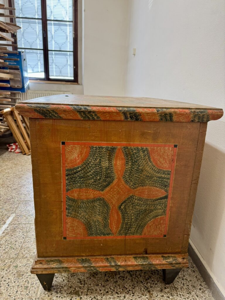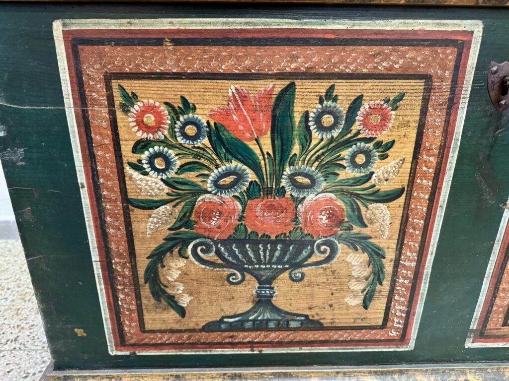 Malovaná skříň s originální malbou a truhlokomoda, signovaná rokem 1828.
