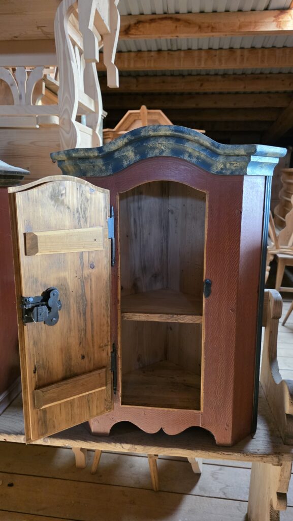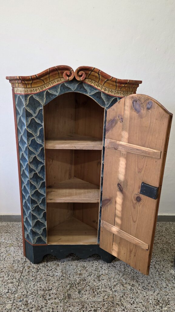 Malovaná rohová skříňka s ozdobnými panty (Závěsná)